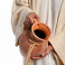 É colocado sobre os ombros de Jesus o braço horizontal da cruz, com um peso de cerca de cinquenta quilos. A outra estaca vertical já está no calvário. Je-sus vai caminhando com os pés descalços pelas ruas de terreno irregular cheio de pequenas pedras. O percurso é de cerca de seiscentos metros, Jesus fatigado arrasta um pé após outro e freqüentemente cai sobre os joelhos. Seus ombros estão cobertos de chagas e quando cai por terra a viga lhe escapa e escorrega pelo dorso esfolando-o.